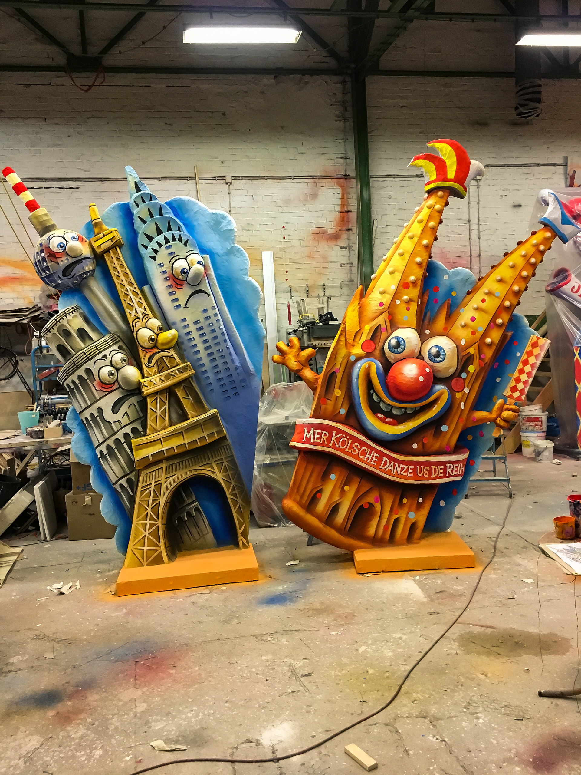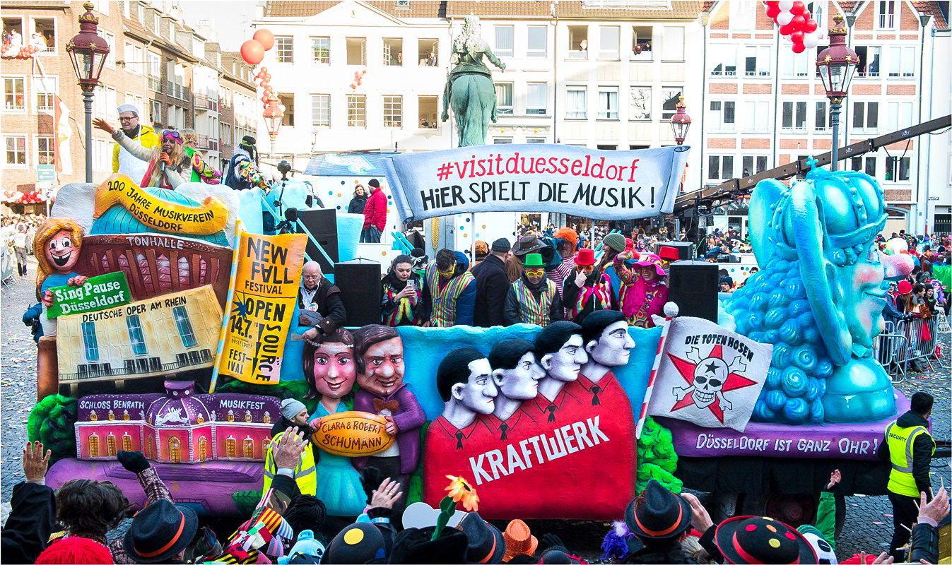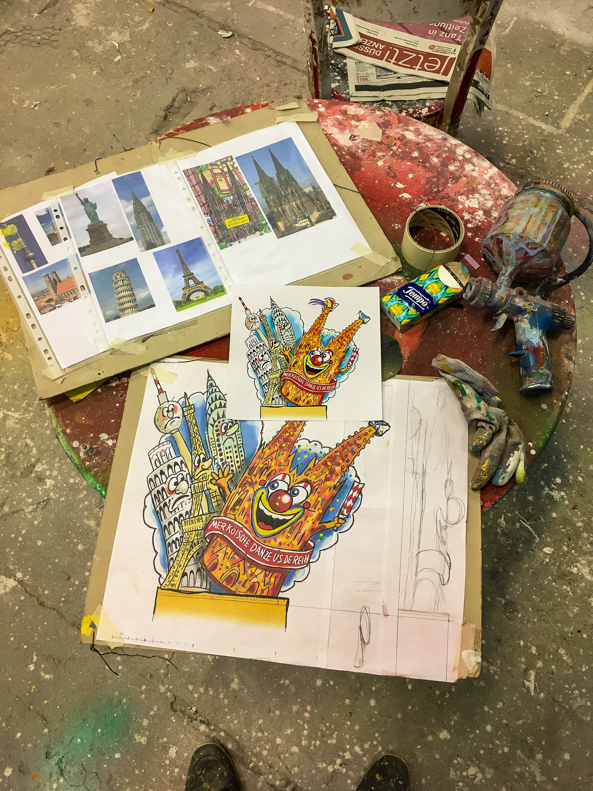 Auswahl an Bemalungen für den Düsseldorfer Rosenmontagszug